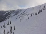 The mountain is really fun to ski. They had some new snow, so everything was fresh and soft. I spent the day picking lines through the trees. Schweitzer has more glades than any resort I can recall skiing. Every run seems to be open in the middle, with progressively denser trees as you move toward the edges. You start by finding fresh snow down the middle, then move deeper into the trees to find the lurking freshies at the end of the day. All day long I found fresh lines. One slight problem with it is the flat spots though. It has these big expansive bowls serviced by a single lift. So you get lots of terrain options, but they all end with a long flat haul back to the base of the lift. Even these sections were fun, because the flats are full of boulders, gullies, and interesting terrain. However, I could see that on a really deep snow day it would be a problem to keep your speed. All in all it was a great mountain and I was glad I made the trip here.