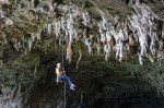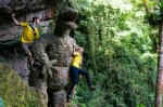 Ryan advised me to start the adventure by jumping off the boulder and taking a whip right off the bat to get the jitters out. I wasn’t afraid of the whip, but I decided to suss it out differently. I scooted out a safe distance from the boulder, and tried to stand on the line from a sitting start. This is more difficult than walking onto it, but I wanted to get a feel for the line in a safe location. I didn’t want to fall right next to the boulder and risk hitting it on the swing. Eventually, I was able to stand, but I wasn’t comfortable enough on this line to walk it yet. After several small falls, I took a full value whip on the tether, swinging from the line upside down. It was a little scary as expected, but the rig held no problem and I had taken care of my jitters. I climbed over to the opposite boulder, walked onto the line, and crossed it successfully the very next try. Ryan and I were the only ones to try the line that day, and he had sent it on his first attempt before I arrived. Double send!!! 🙂
